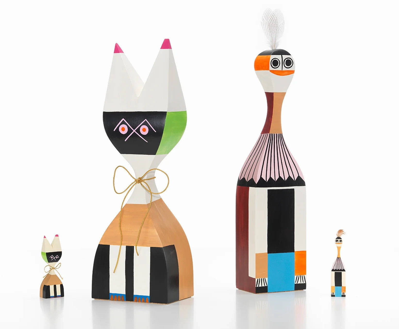 The Wooden Dolls by Alexander Girard are a large family of wooden figures representing human and animal characters. Girard designed them in 1952 for his own use as decorative objects in his Santa Fe home. Today, the re-editions are as colorful and nuanced as the originals, they make wonderful conversation starters for any owner.