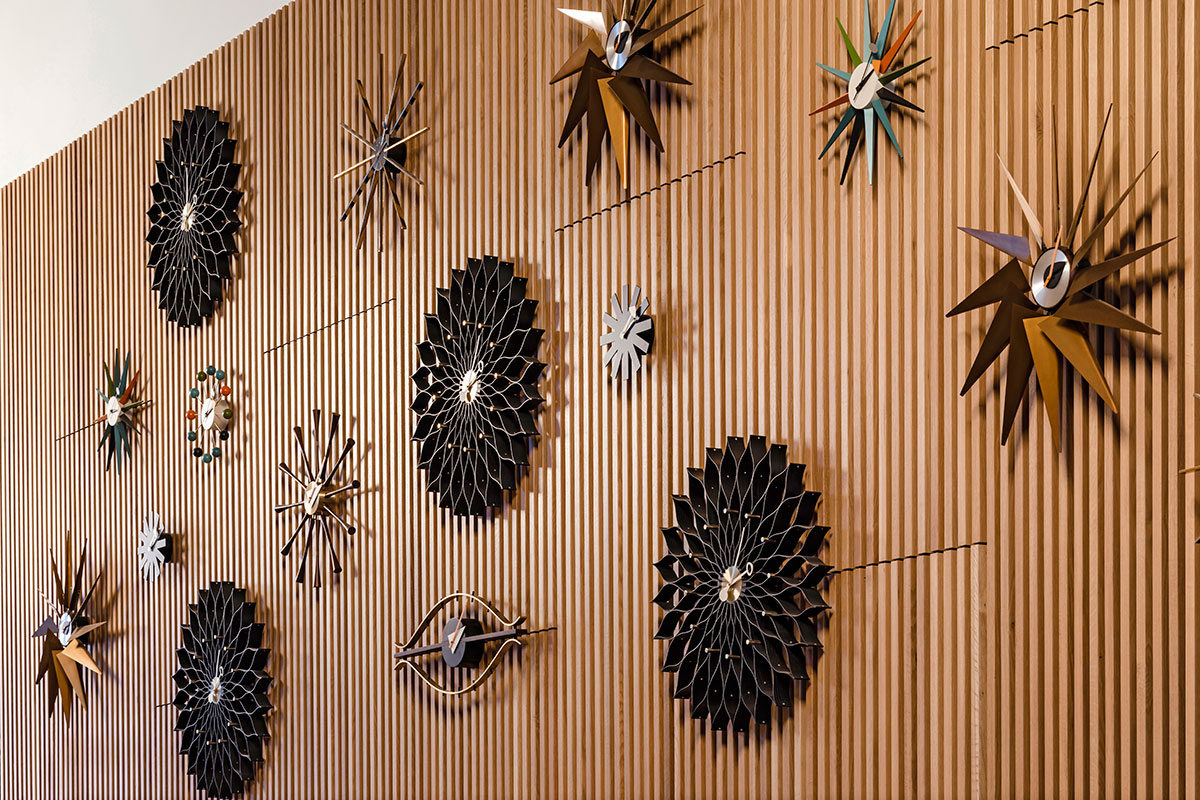 Nelson analyzed how people used clocks and concluded that they read the time by discerning the relative position of the hands, making numbers unnecessary. Since most people wore wristwatches, he assumed that clocks had become more of a decorative element for interiors. And yes, they serve that purpose beautifully in any space!