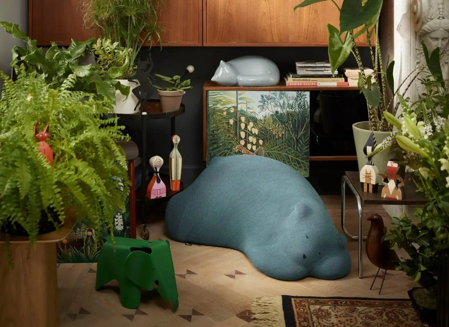 Numerous works by the creative duo Front are devoted to the systematic observation of sleeping or hibernating animals. This fascination inspired their design of a group of slumbering creatures called Resting Animals, whose poses exude serene tranquility. The largest is a knit-covered bear that can be used for a variety of functions, such as a stool, ottoman, or backrest. This piece is perfect for cozy and playful spaces!